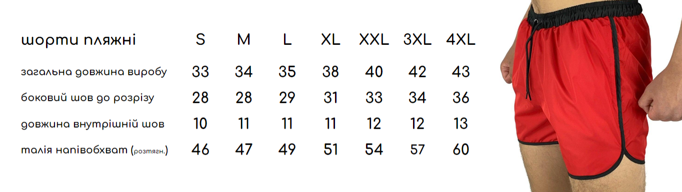• Шорти вільно сидять на тілі, відмінно підійдуть для активних ігор у воді, пляжного футболу, волейболу